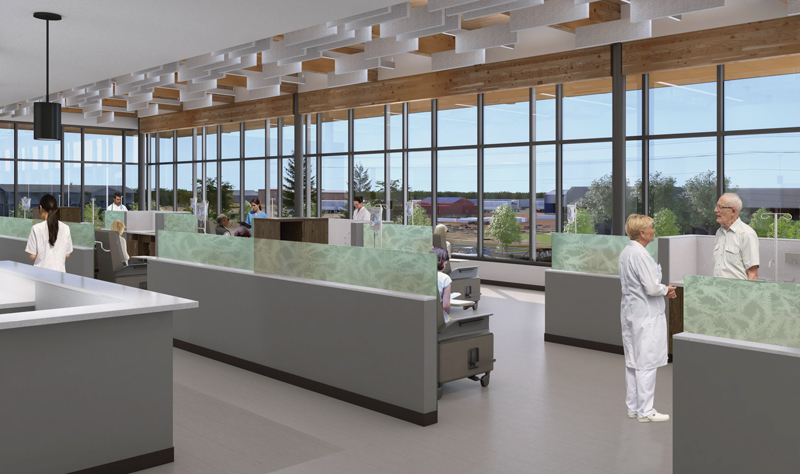 Located on the second floor of the Cancer Center, a 5,000 square-foot chemotherapy infusion room with floor-to-ceiling windows will provide views of the Cascade Mountains. The space will include 24 infusion chairs, three privacy bays and a private waiting area.