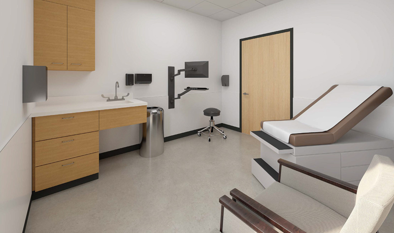 One of the Cancer Center’s 36 exam rooms will be located here. Each room has been thoughtfully designed to meet the needs of our oncology patients.